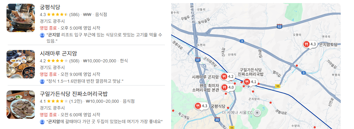 곤지암 일대는 소머리국밥이 대표적인 명물입니다.