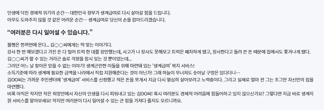– 40대 가장, 3인 가구 수급자 후기